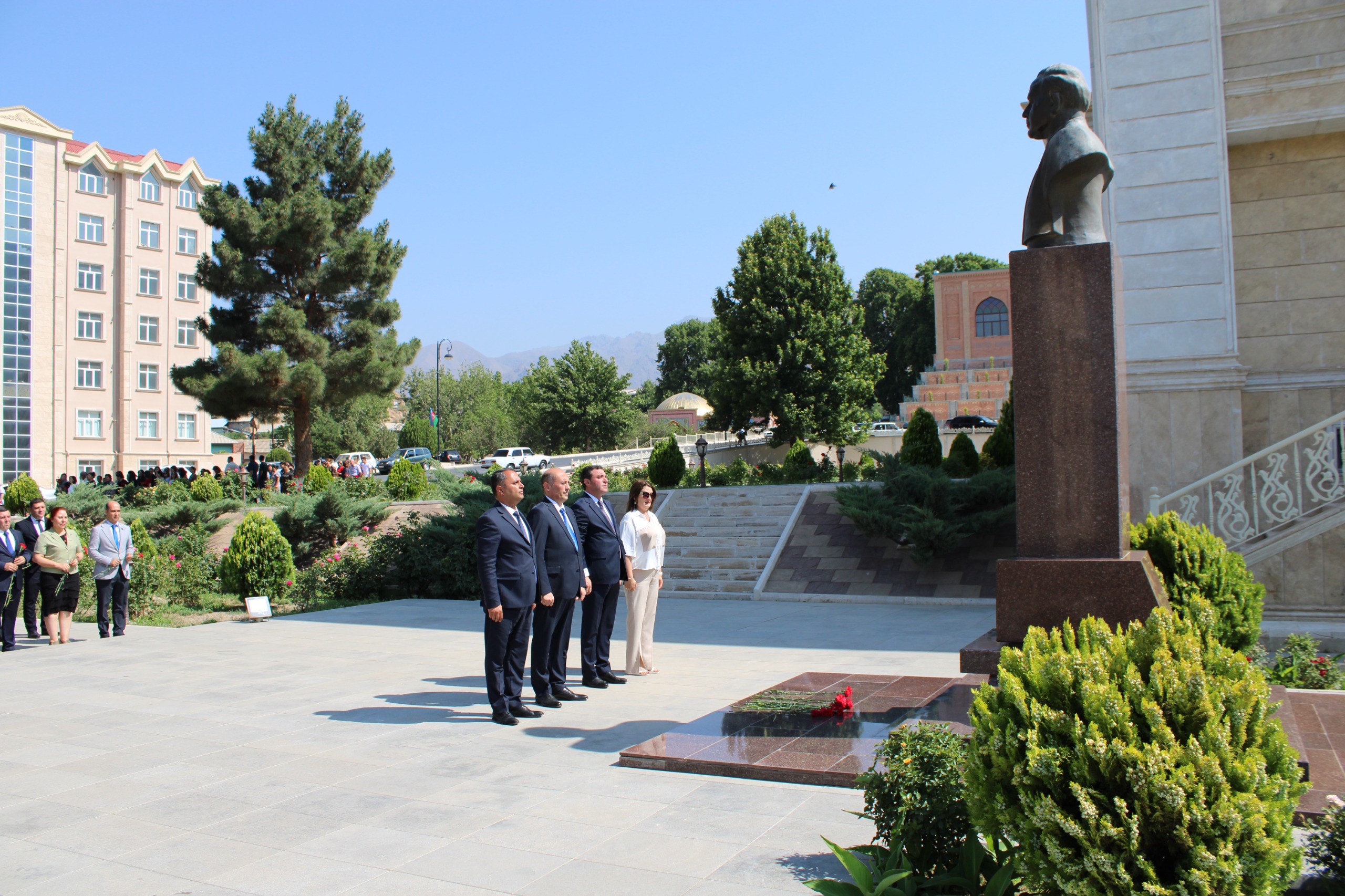 Ziyarət zamanı iştirakçılar müasir, müstəqil Azərbaycanın qurucusu və memarı, xalqımızın xilaskarı olan dahi şəxsiyyətin xatirəsini ehtiramla yad edərək, abidənin önünə tər güllər düzüblər.