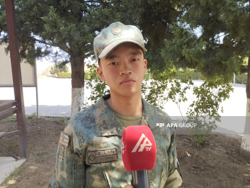 "Xidmətə yeni gələndə əsgər yoldaşlarım üçün mənim asiyalı görünüşüm maraqlı idi. Ona görə də, xeyli suallar verirdilər. Bəzən bu, yorucu olsa da, sonradan öyrəşdim. Burada yeni dostlar qazanmışam. Komandirlərlə də münasibətim çox yaxşıdır".
