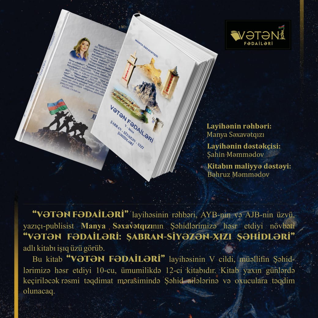 Zəfərimizin beşinci ildönümünə doğru irəlilədiyimiz, qəhrəman şəhidlərimizin beşinci Anım Gününü keçirdiyimiz bu günlərdə müəllifi Manya Səxavətqızı olan “VƏTƏN FƏDAİLƏRI” layihəsinin V cildinin işıq üzü görməsi təkcə bir kitabın nəşri deyil, bu həm də tarixin yaddaşa həkk olunması, şəhid ömürlərinin sözlə ucaldılmasıdır.