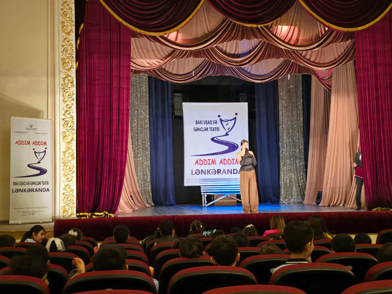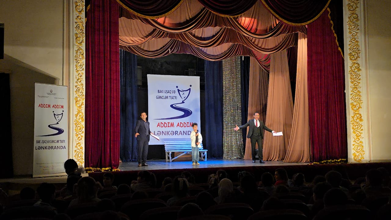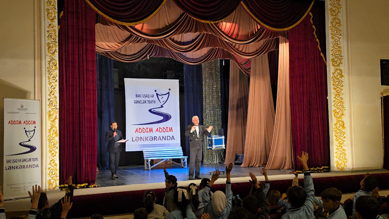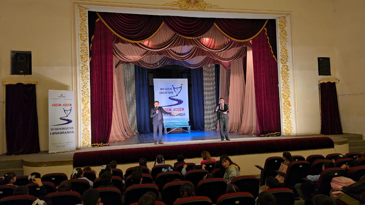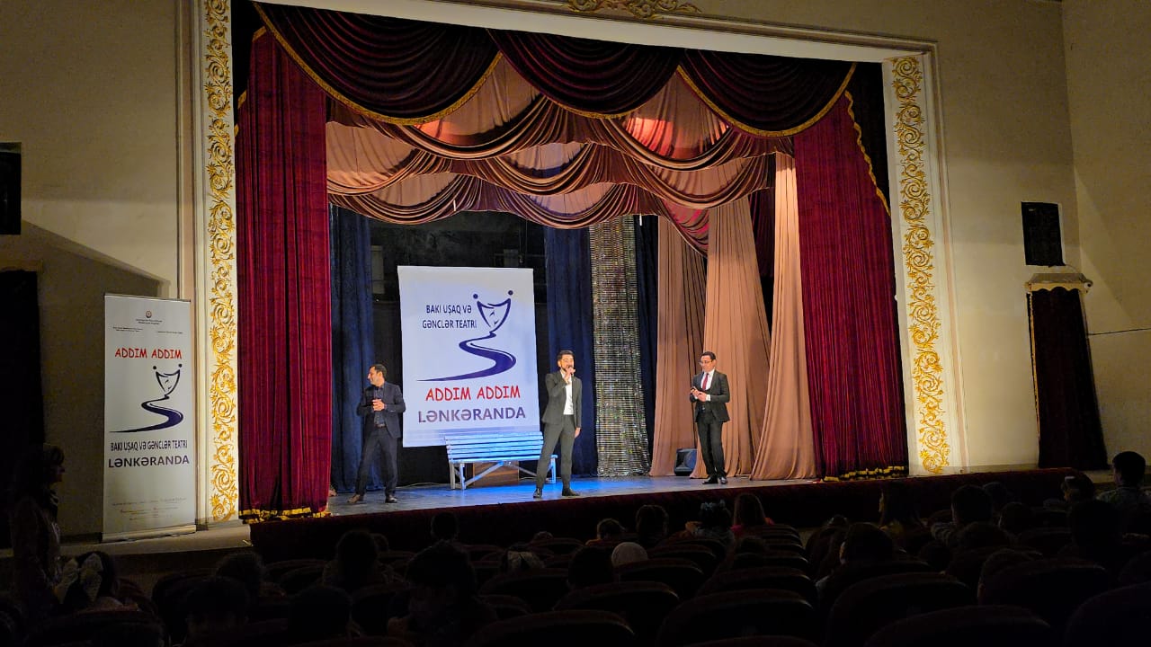 Daha sonra səhnəyə hər iki teatrın direktorları - Azərbaycan Respublikasının Əməkdar mədəniyyət işçisi, Dağıstan Respublikasının Əməkdar artisti, rejissor, aktyor Laləzar xanım Hüseynovanı, Azərbaycan Respublikasının Əməkdar artisti, rejissor, aktyor İntiqam Soltanı dəvət ediblər. Laləzar xanım Hüseynova Bakı Uşaq və Gənclər Teatrının kollektivini salamlayaraq, bu layihənin əhəmiyyətini xüsusi vurğulayaraq onlara uğurlar arzulayıb. Bakı Uşaq və Gənclər Teatrının direktoru, bədii rəhbəri, layihənin rəhbəri İntiqam Soltan Lənkəran Dövlət Dram Teatrına Bakı Uşaq və Gənclər Teatrının ADDIM-ADDIM VƏTƏNDƏ layihəsinə verdiyi dəstəyə görə təşəkkürnamə təqdim edib.