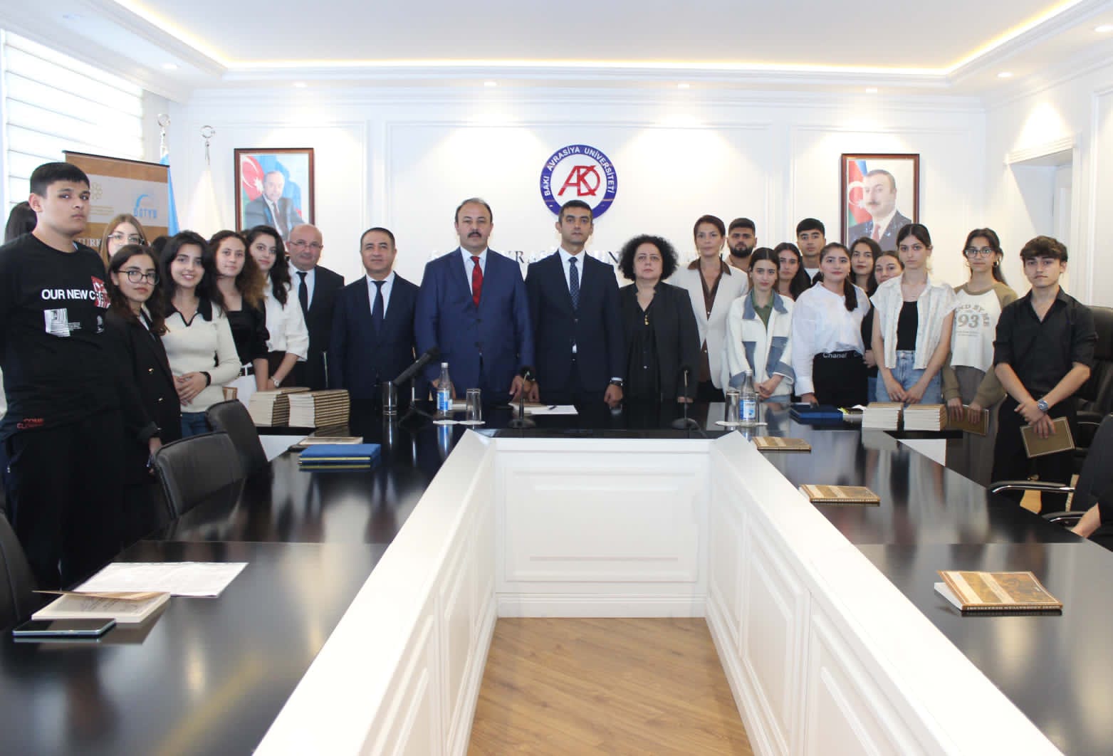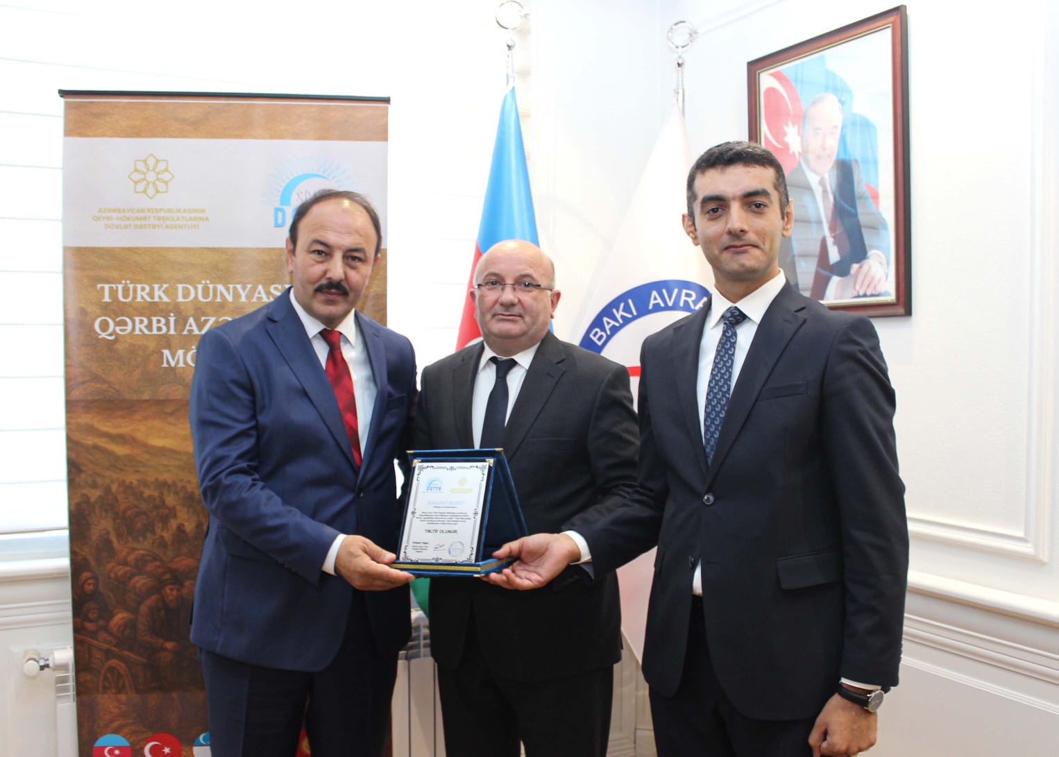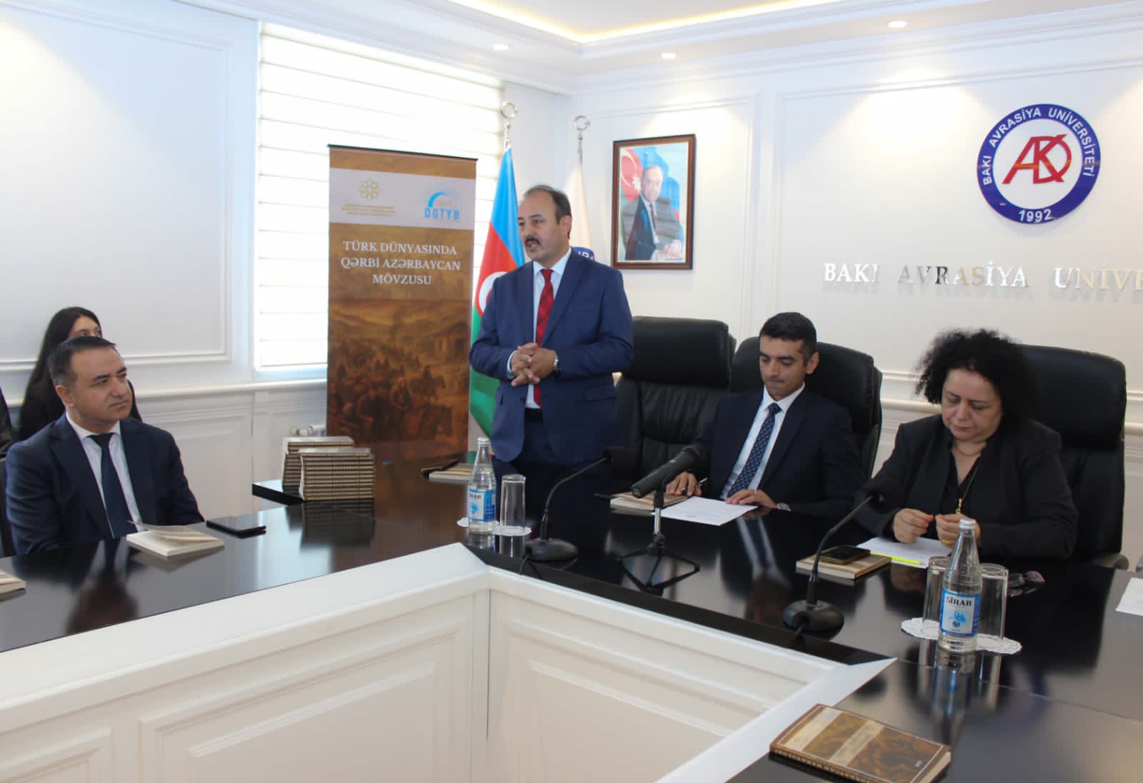 Bakı Avrasiya Universitetində Dünya Gənc Türk Yazarlar Birliyinin (DGTYB) Azərbaycan Respublikasının Qeyri-Hökumət Təşkilatlarına Dövlət Dəstəyi Agentliyinin donorluğu ilə icra etdiyi “Türk dünyasında Qərbi Azərbaycan mövzusu” adlı layihə çərçivəsində hazırlanan "Qərbi Azərbaycan hekayələri" adlı kitabın təqdimatı keçirilib.