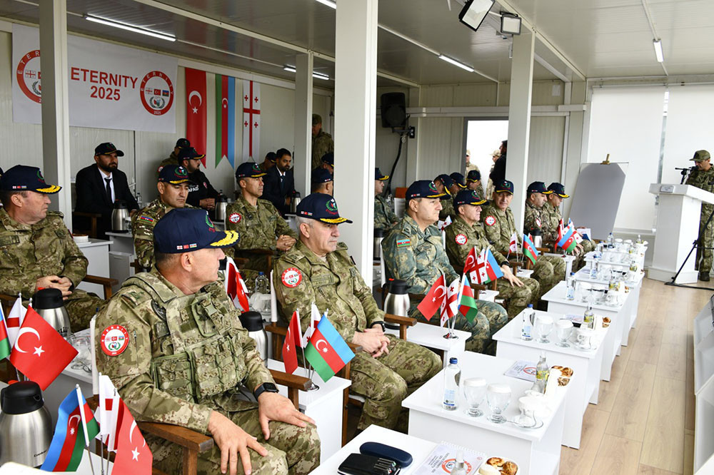 Azərbaycan, Gürcüstan və Türkiyə hərbçilərinin iştirakı ilə Türkiyə Respublikasının Qars vilayətində təşkil olunan üçtərəfli "Eternity-2025" kompüter dəstəkli komanda qərargah təliminin “Yüksək Səviyyəli Müşahidəçi Günü” keçirilib.