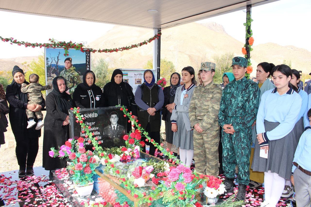 Əvvəlcə şəhidlərimizin əziz xatirəsi bir dəqiqəlik sükutla yad edilib. Sonra dovlət Himni oxunub. Şəhidin məzarına tər çiçəklər düzülüb, ruhuna dua edilib.