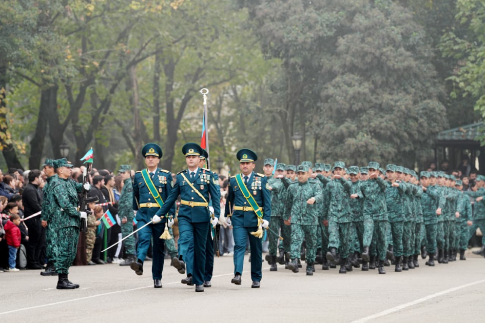 Andiçmə mərasimləri gənc əsgərlərin təntənəli marşla tribuna önündən keçidi ilə başa çatıb.