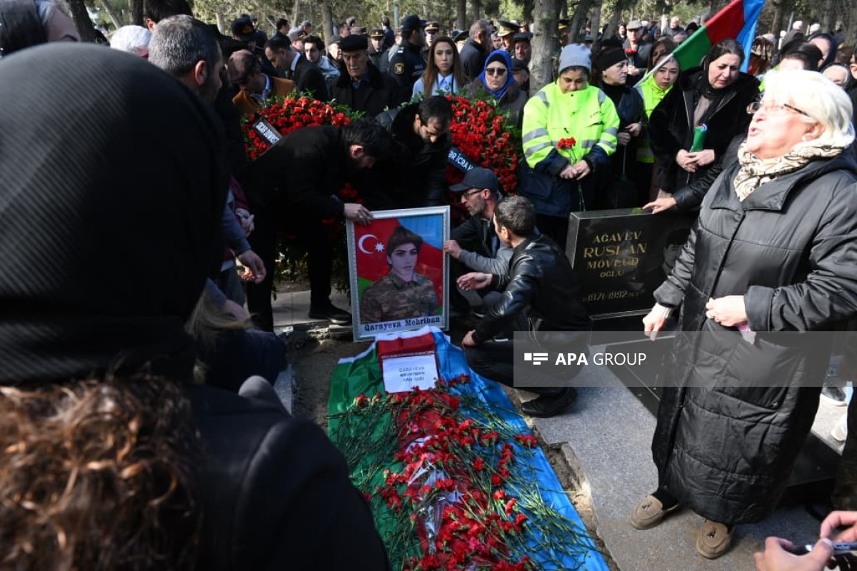 Şəhid Mehriban Qarayevanın nəşinin qalıqları hərbi orkestrin və yaylım atəşinin müşayiəti ilə dəfn olunub.