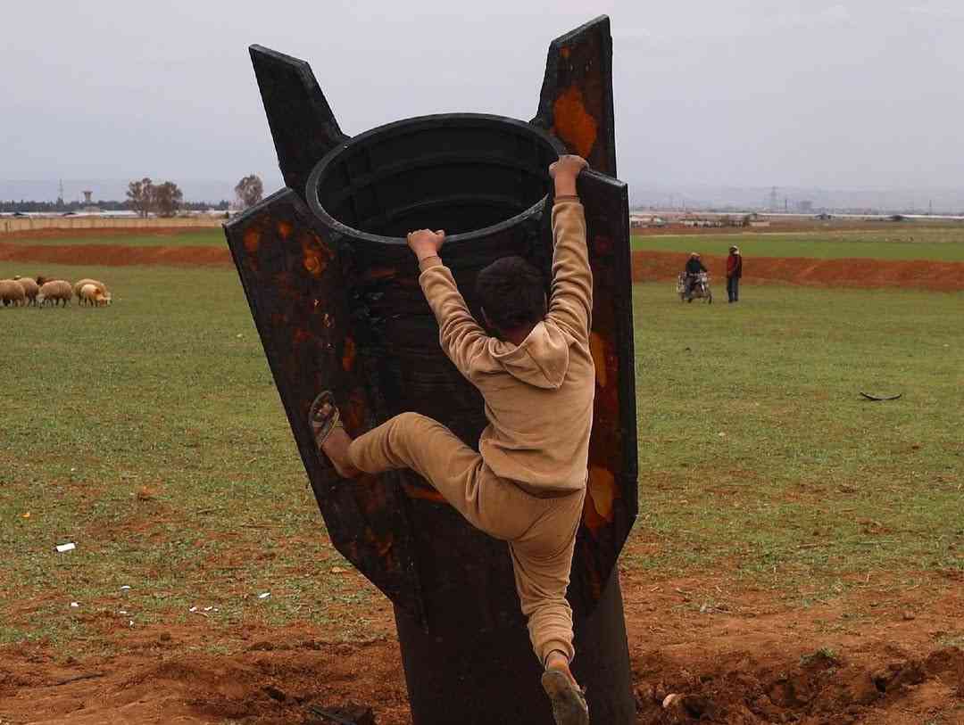 Uşaqlar partlamamış raketlə oyayır