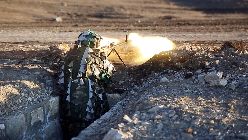 Ümumqoşun atış sahəsinə baxış keçirdikdən sonra Müdafiə naziri bölmələrin nümayiş döyüş atışlarını izləyib.