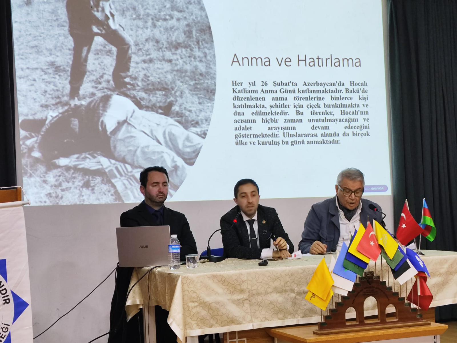 Konfransın panel hissəsində, moderator Dr. Caner Karakuşun rəhbərliyi ilə, ehtiyatda olan briqada generalı, Prof. Dr. Esat Arslan və Dr. Elvin Abdurahmanlı hərbi, siyasi və hüquqi perspektivlərdən Xocalı və Qarabağ prosesini müzakirə ediblər.