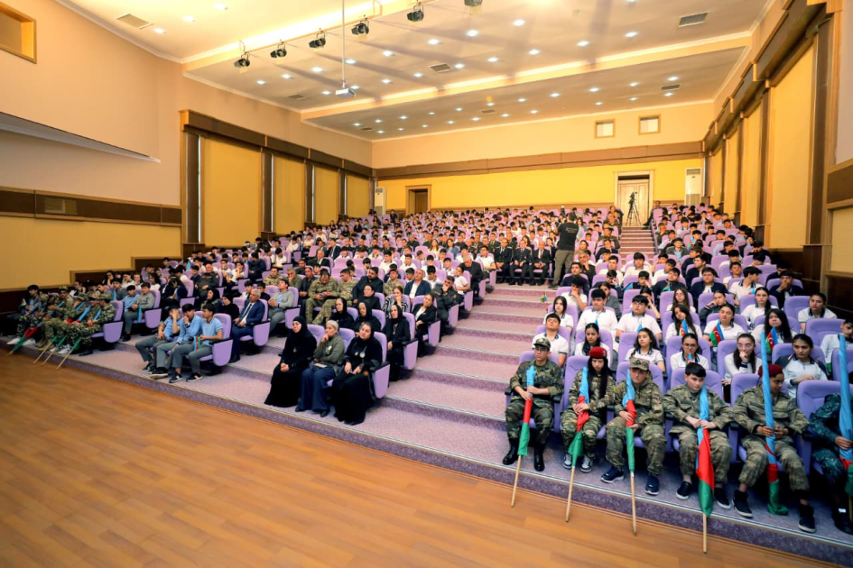 Tədbirdə çıxış edən Dövlət Xidmətinin Çağırışaqədərki hazırlıq idarəsinin rəisi polkovnik-leytenant Füzuli İsmayılov müharibə zamanı gənclərin vətənpərvərliyindən, sabahın əsgəri olacaq çağırışçıların fiziki və psixoloji statuslarının yüksək səviyyədə saxlanılmasından, həmçinin yeniyetmə və gənclər arasında sağlam həyat tərzinin təbliği, onların həyat üçün zərərli vərdişlərdən uzaqlaşdırılması istiqamətində həyata keçirilən tədbirlər barədə danışıb.