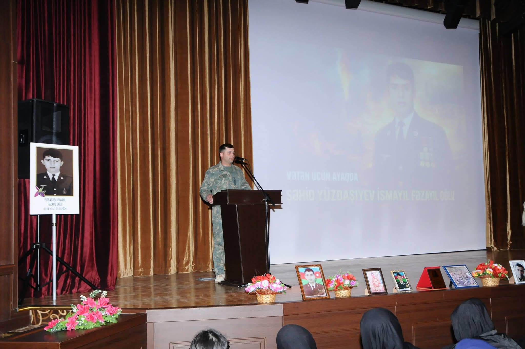Şagirdlər tərəfindən şəhidlərin əziz xatirəsinə həsr olunmuş şeirlər səsləndirilib, daha sonra İsmayıl Yüzbaşyevin həyat və döyüş yolunu əks etdirən videoçarx nümayiş etdirilib.
