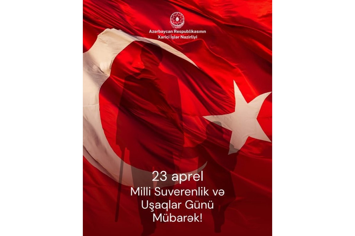 23 Aprel – Milli Suverenlik və Uşaq Bayramı münasibətilə qardaş Türkiyəni səmimi qəlbdən təbrik edirik.